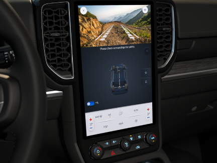 Chính giữa táp-lô là màn hình trung tâm 10,1 hoặc 12 inch, tùy cấu hình, thiết kế đặt dọc, đi kèm hệ thống giải trí SYNC 4A mới nhất.